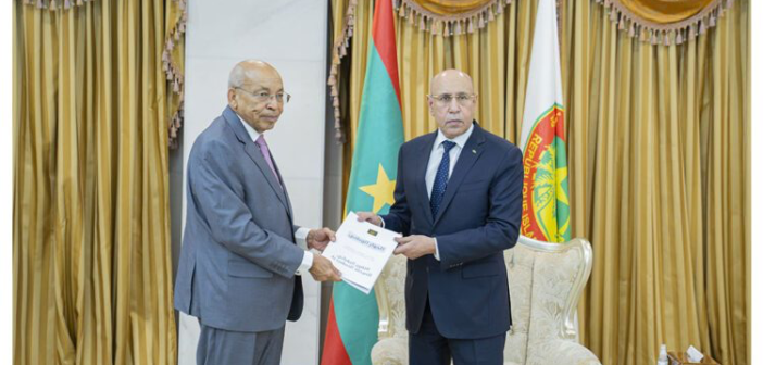 تسلم الرئيس محمد ولد الشيخ الغزواني، اليوم الاثنين، من منسق الحوار الوطني موسى فال، التقرير الذي يضم رؤى ومواقف الأحزاب السياسية والقوى الوطنية بشأن الحوار الوطني المرتقب.